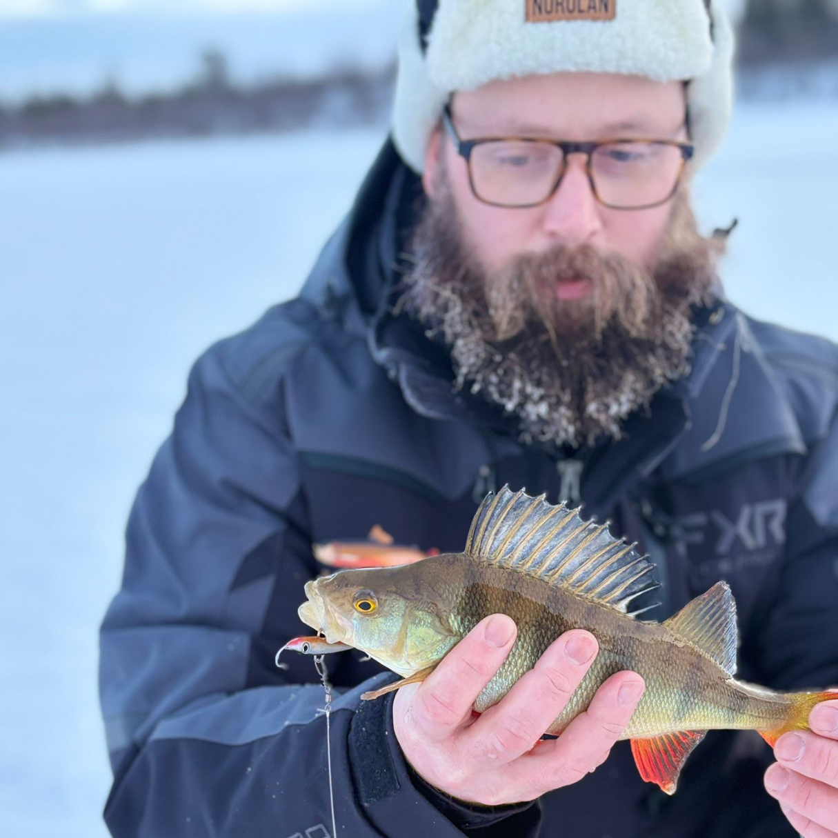 Houkuttelee iskemään: Pilkin luonnollinen muoto yhdistettynä iskupisteenä toimimaan käsintehtyyn mätikoukkuun ovat vastustamaton makupala. Jos pyydät vain isoa ahventa, voit jättää mätikoukun pois, jolloin tasuria hakkaavat pienet ahvenet eivät jää kiinni niin helposti.