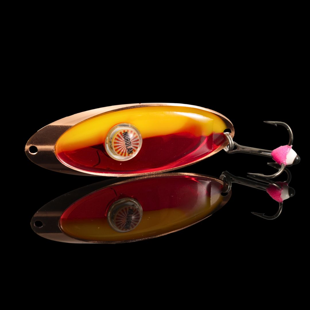 Haluamme myydä vain sellaisia pilkkejä, joilla haluamme itsekin kalastaa. Innokkaina kirjolohen pilkkijöinä halusimme luoda pienikokoisen ja pitkään leijaavan pilkin jossa on mukana kaloja houkuttava vaihdettava Norolan Original LED-valo.